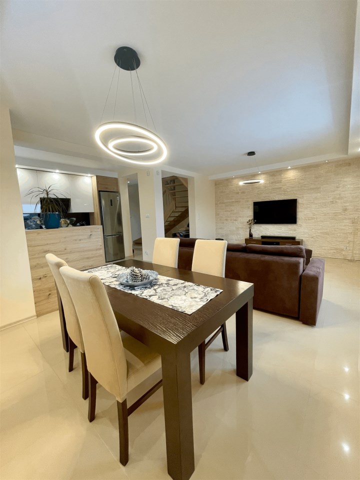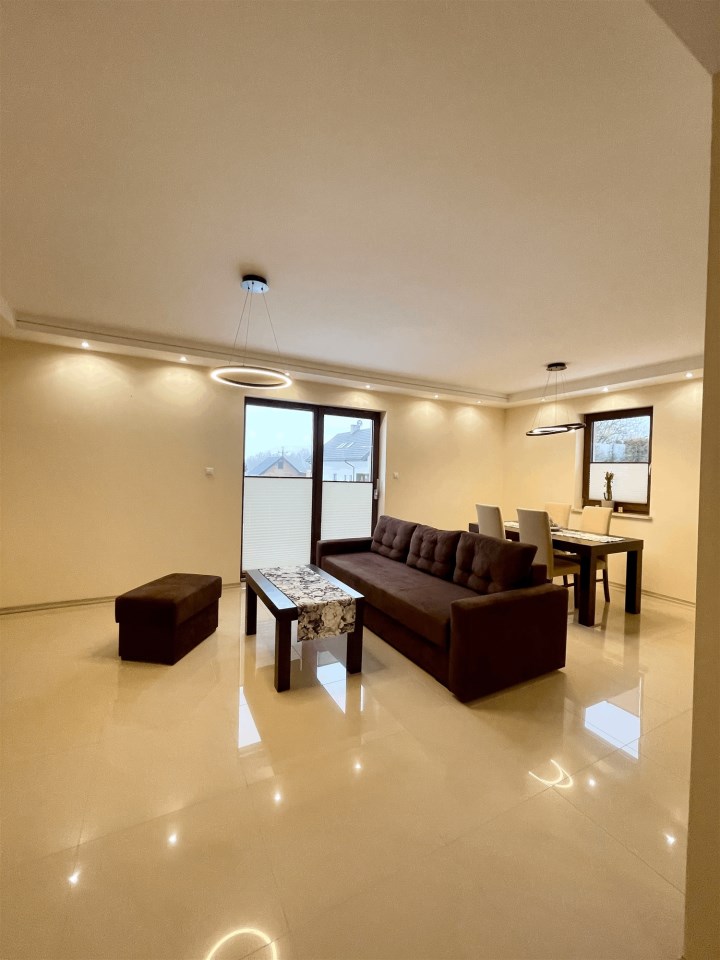 - szeroki salon z jadalnią i wyjściem na duży taras