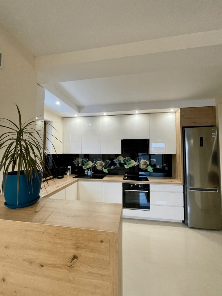 | Wyposażenie kuchni | stała zabudowa, płyta indukcyjna, piekarnik elektryczny, okap, meble kuchenne na wymiar, lodówko-zamrażarka, |