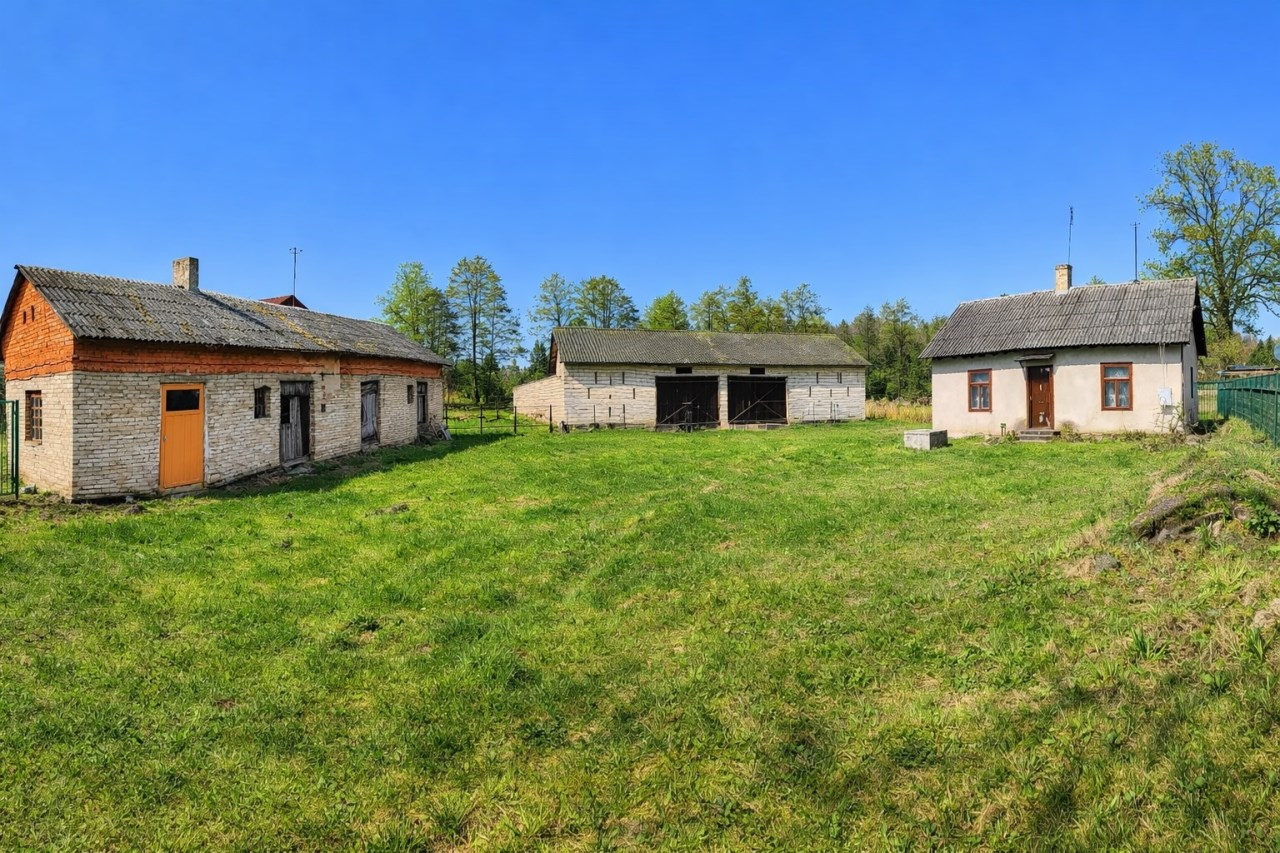 Na terenie znajduje się drewniany dom 2 izbowy z łazienką o powierzchni zabudowy 60mkwdo odrestaurowania, stodoła oraz budynek gospodarczy (obora), co stwarza szerokie możliwości adaptacyjne -zarówno w kierunku klimatycznego siedliska, jak i działalności gospodarczej.