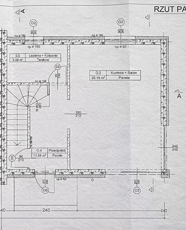 na dole przestrzeń dzienna z wyjściem na ogród,