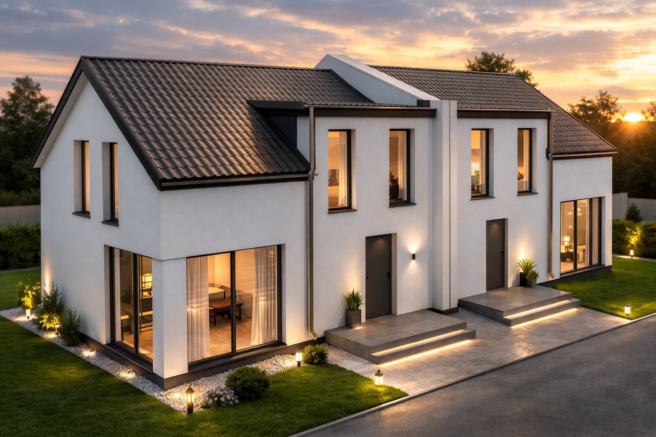 Nowoczesny półbliźniak o powierzchni 76 m2 powstaje w otoczeniu nowych domów jednorodzinnych- w miejscu, które już dziś ma swój spokojny, uporządkowany charakter. To nie jest przypadkowa zabudowa, tylko rozwijające się kameralne osiedle.