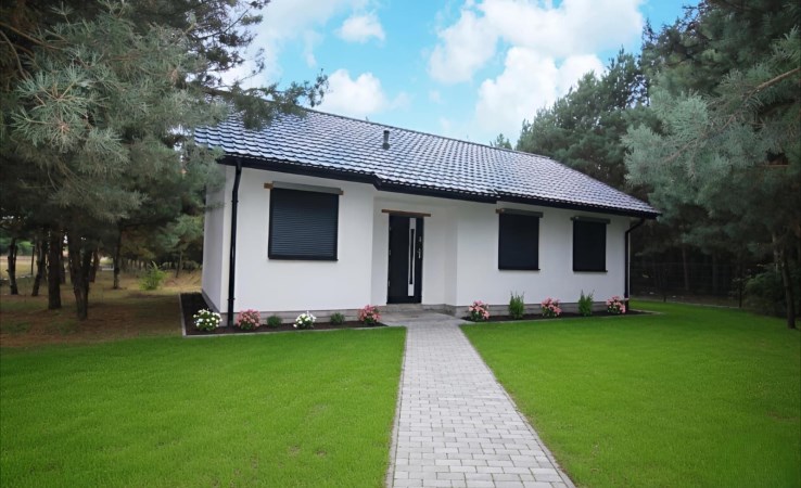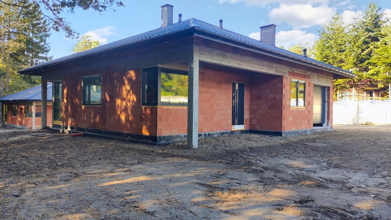 Parterowy dom w stanie surowym zamkniętym na kameralnym ogrodzonym osiedlu 3 domów w Jedlni Letnisko koło Radomia
