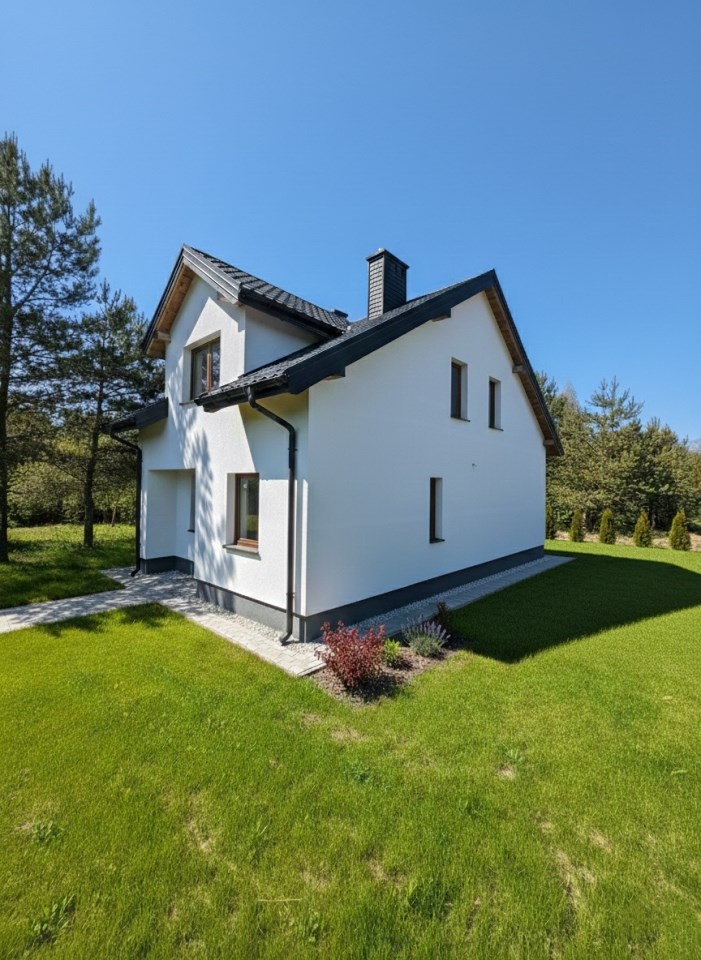 Dom został zaprojektowany z myślą o komforcie codziennego życia rodziny. Przemyślany podział na strefę dzienną i prywatną gwarantuje wygodę oraz poczucie przestrzeni.