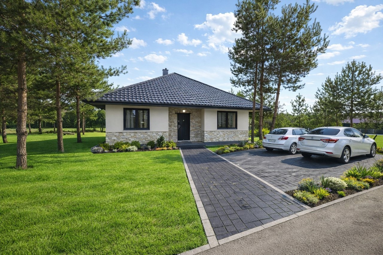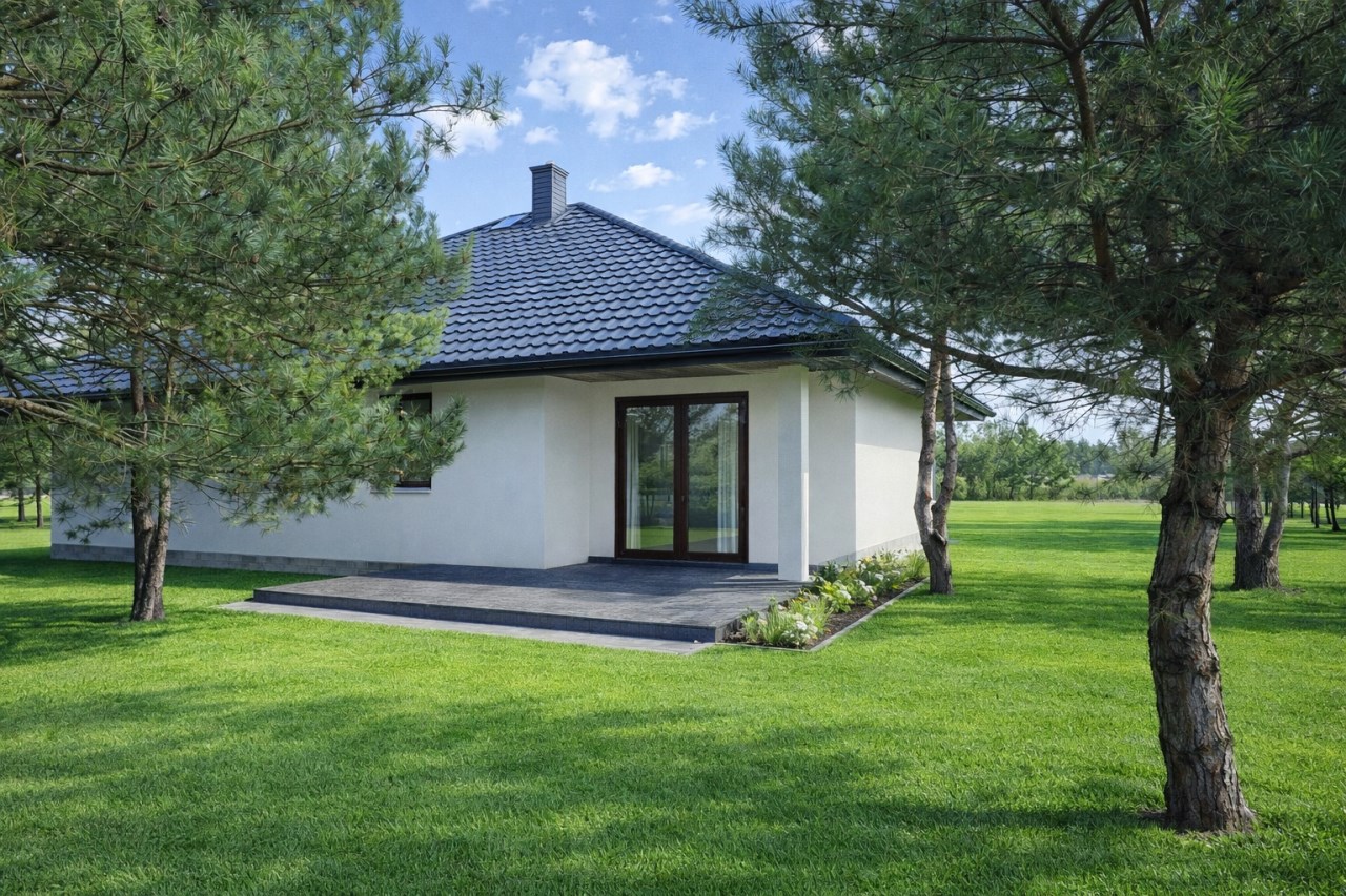 Największy atut? Przyroda na wyciągnięcie ręki! Dom powstaje na działce, na której rosną dorodne, wieloletnie sosny. Nie musisz czekać latami, aż urosną nasadzenia.