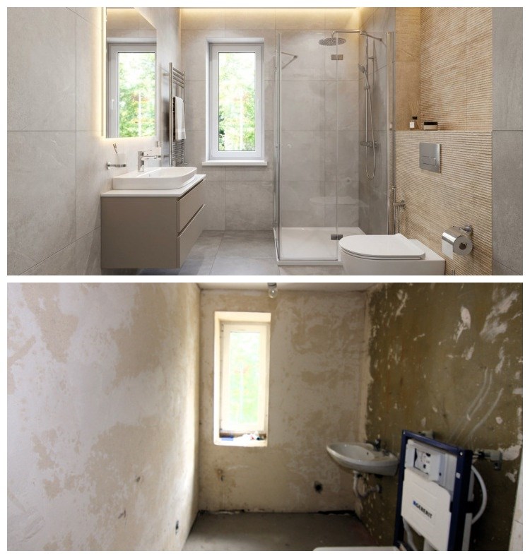Wykończona łazienka z glazurą i zabudowaną spłuczką