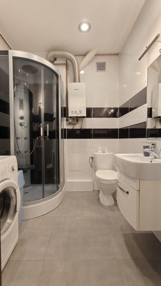 - Ciepła woda: świeży piecyk gazowy marki Junkers (najbardziej ekonomiczny sposób na podgrzanie wody).