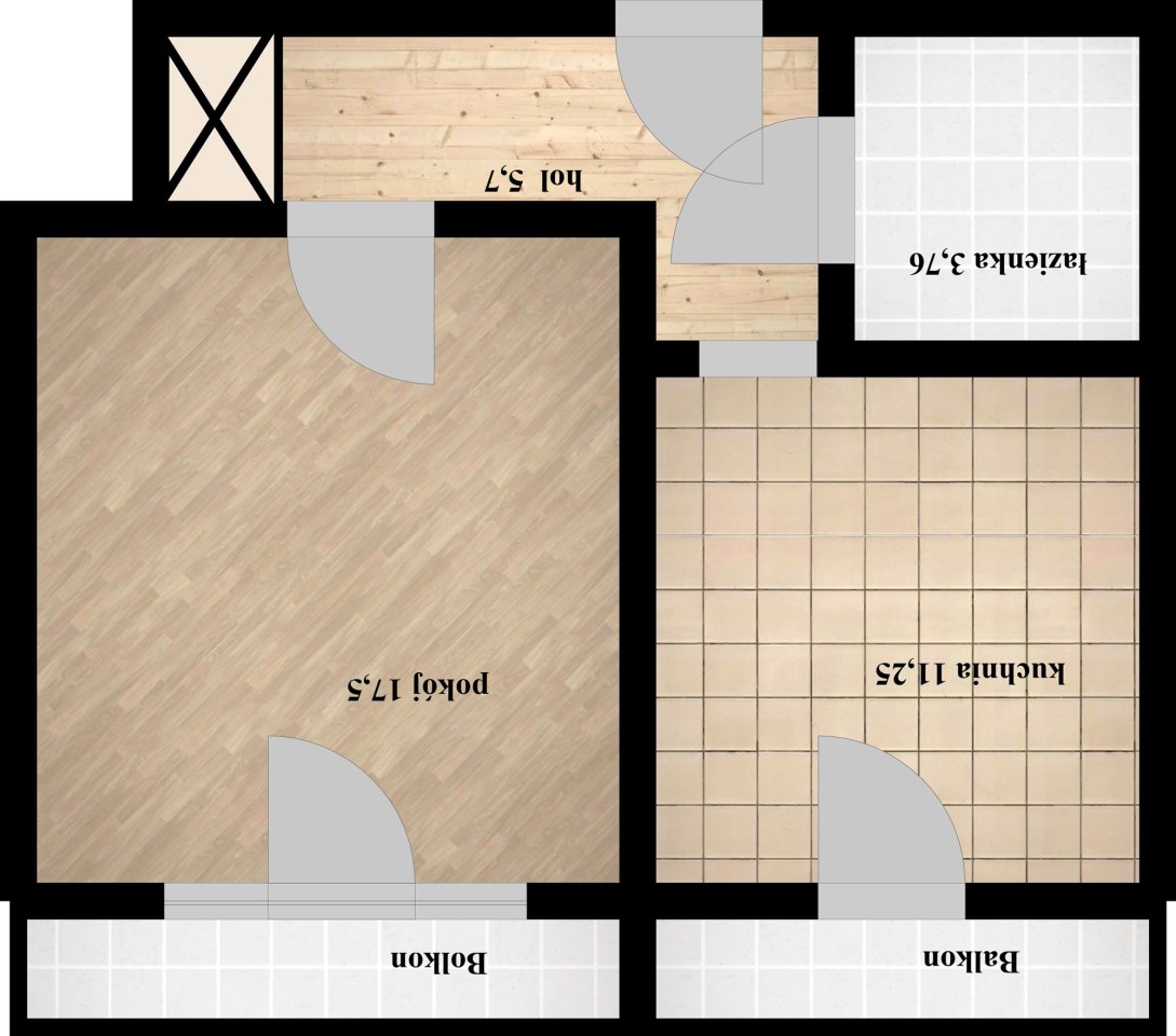 UKŁAD POMIESZCZEŃ Mieszkanie ma funkcjonalny układ z dwoma wyjściami na balkon – zarówno z kuchni, jak i z pokoju. W skład lokalu wchodzą: