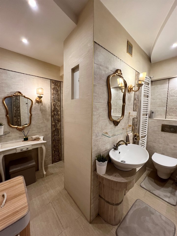 Duża, efektownie zaaranżowana łazienka to zdecydowany wyróżnik tej nieruchomości.