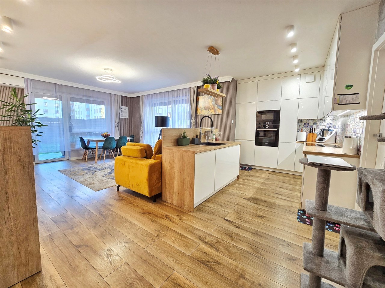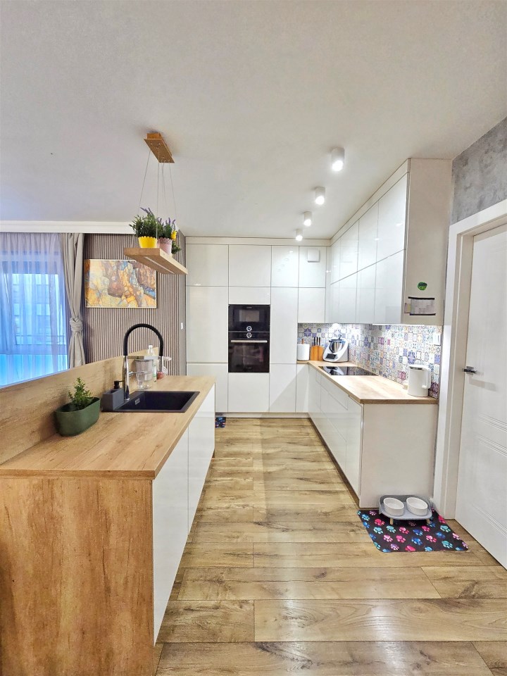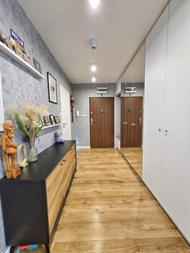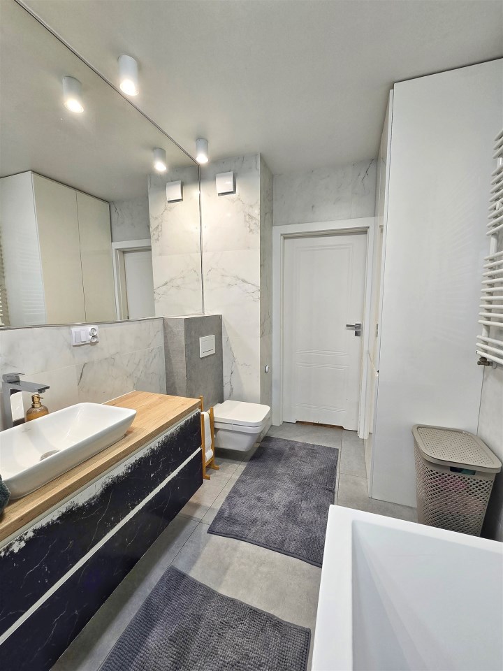 Mieszkanie zostało wykończone z dbałością o detale, łącząc funkcjonalność z nowoczesnym designem.