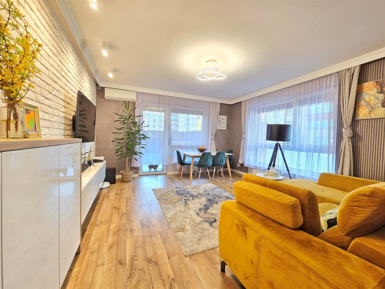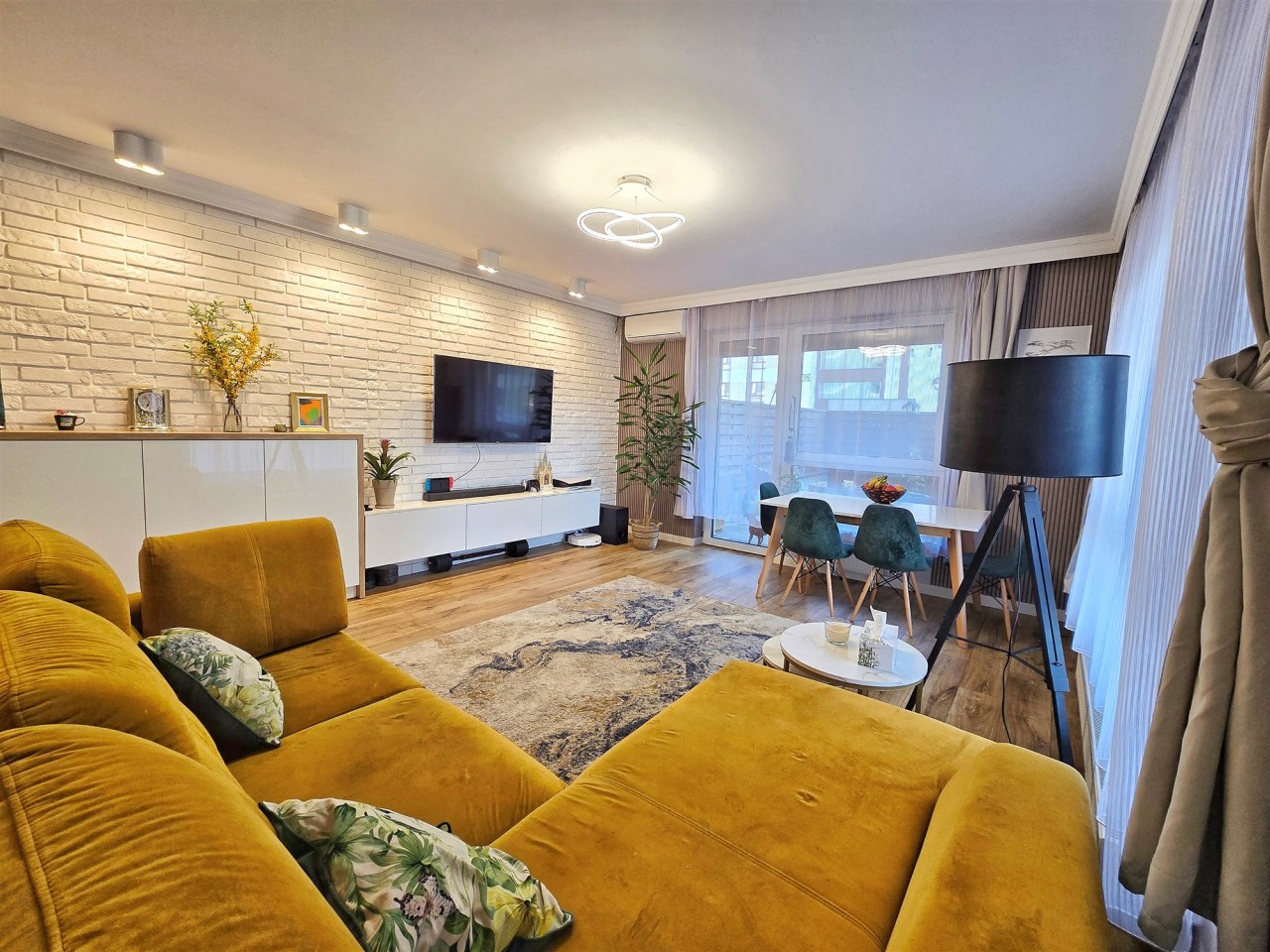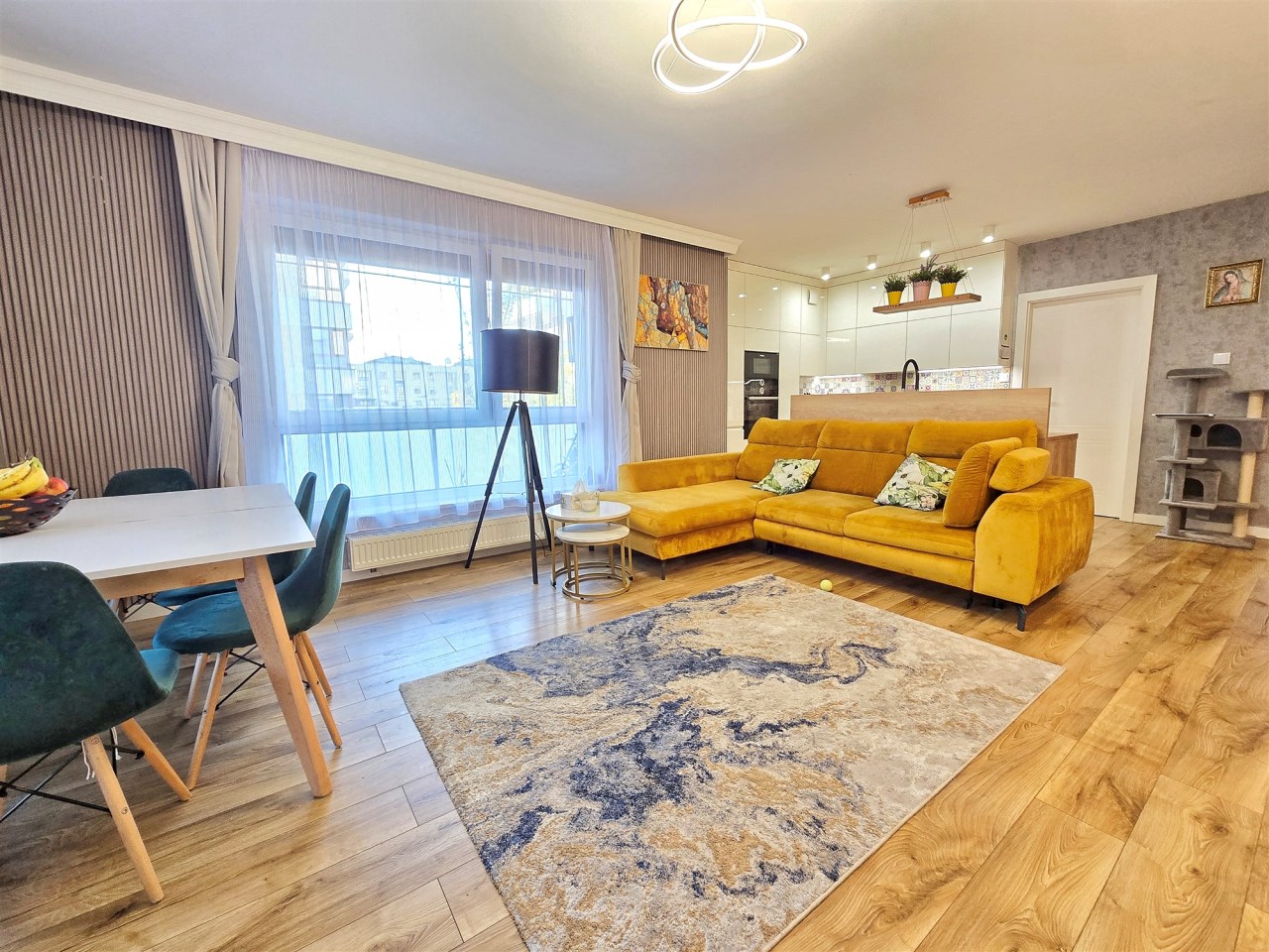 Mieszkanie zostało wykończone z dbałością o detale, łącząc funkcjonalność z nowoczesnym designem.